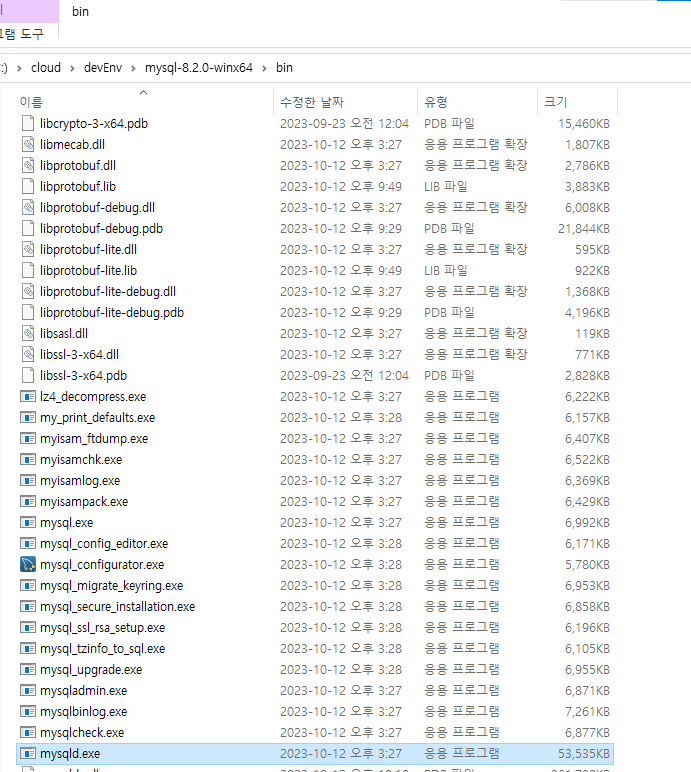 bin > mysqld.exe 를 실행해본다.