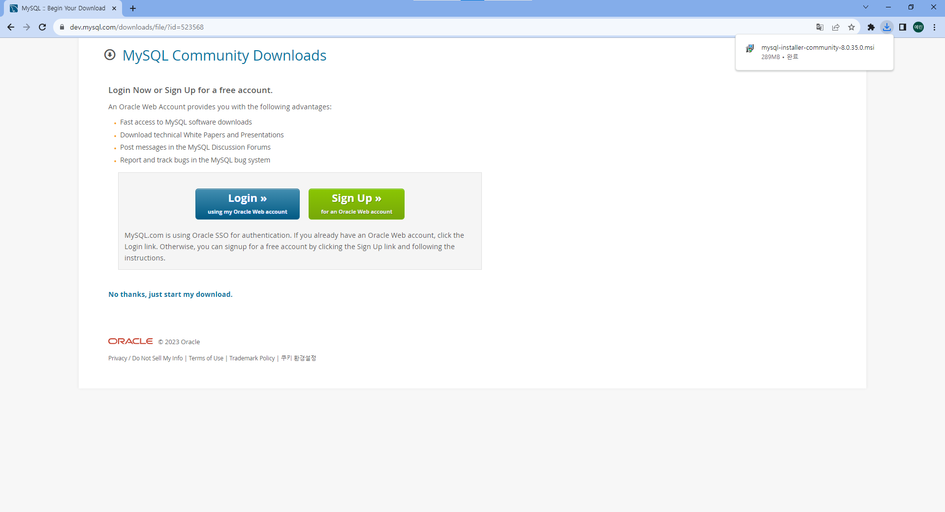 버튼 대신 No thanks, just start my download. 클릭